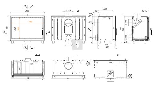 A kazettás kandallóbetét gyártásához melegen hengerelt, alacsony ötvözésű szénacél kerül felhasználásra. A bélés 30 mm vastag vermikulitból és 35 mm vastag cseh samottból készül, amelyek kiváló hőtároló és hőálló tulajdonságokkal rendelkeznek.